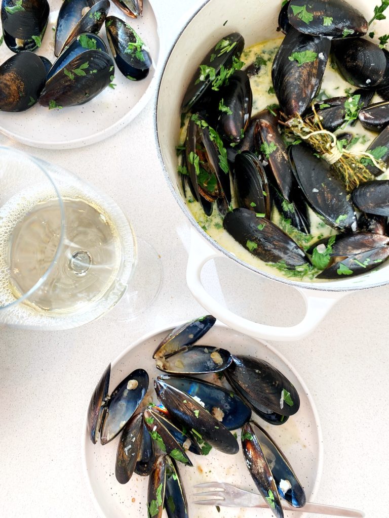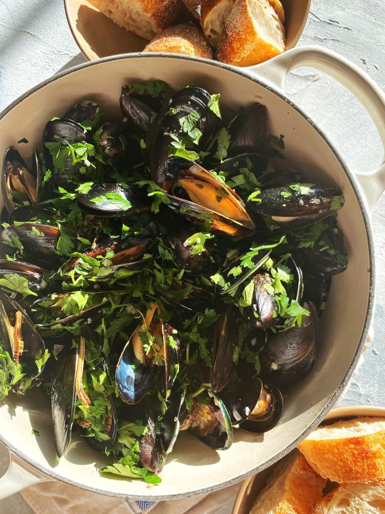 Moules Marinière ∽ Mejillones en vino blanco y crema ♡